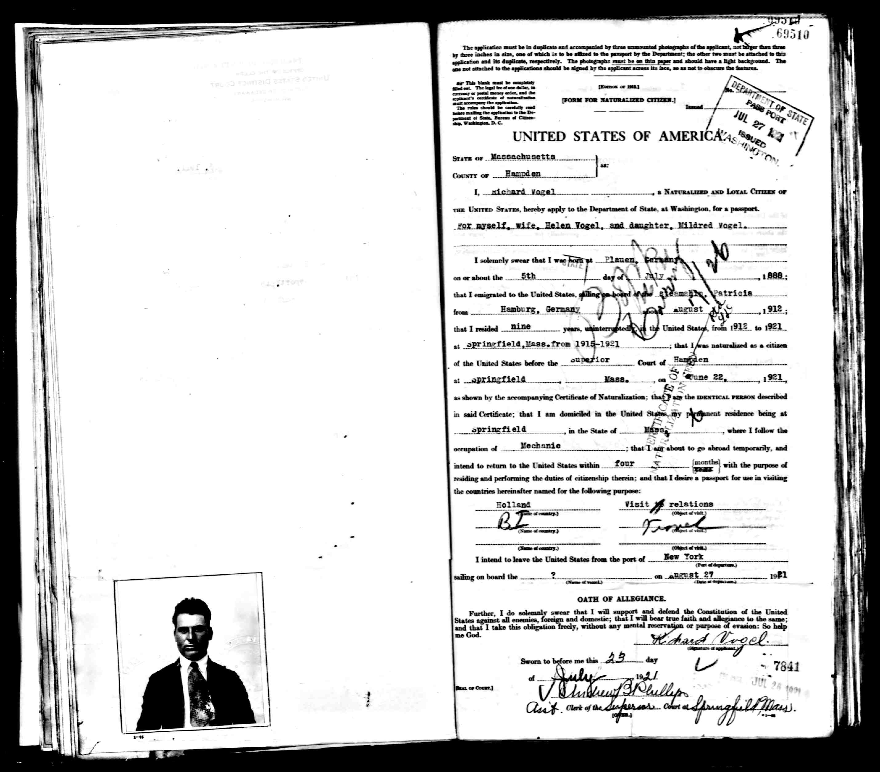 Richard Vogel’s passport application, July 23, 1921, Record Group 59 – Records of the Department of State, National Archives and Records Administration, Washington, DC.