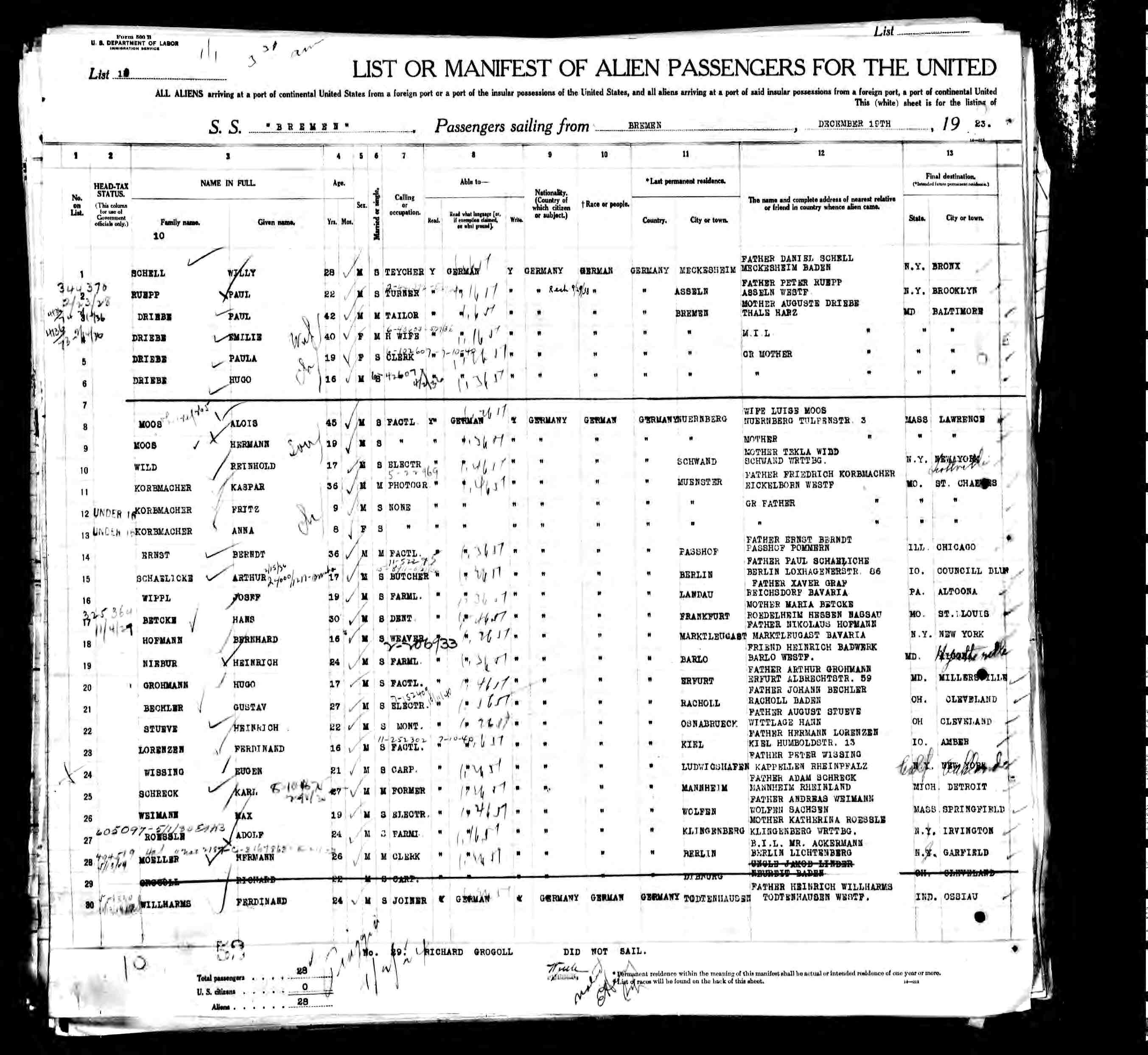 Max Weinmann listing, S.S. Bremen Passenger List, January 1, 1924 (Page 1) (Page2), Ship Passenger Lists for the Port of New York.