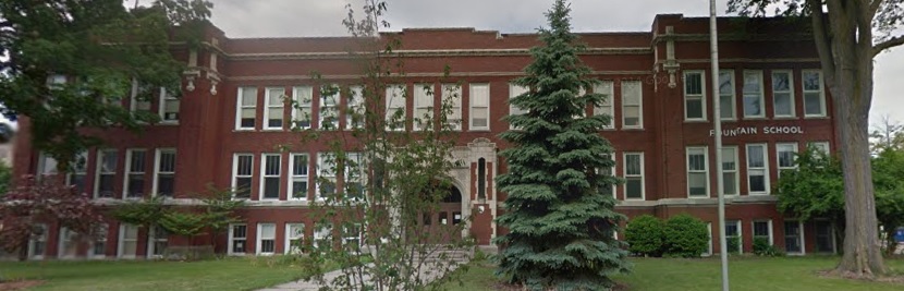 | I was attending South Division school then. My only memory is of having the palm of my hand beaten with a ruler for talking in class. I reported this cruelty to a policeman, but he took no action. | This school was at the northwest corner of South Division Avenue and Bartlett. It is no longer standing. |