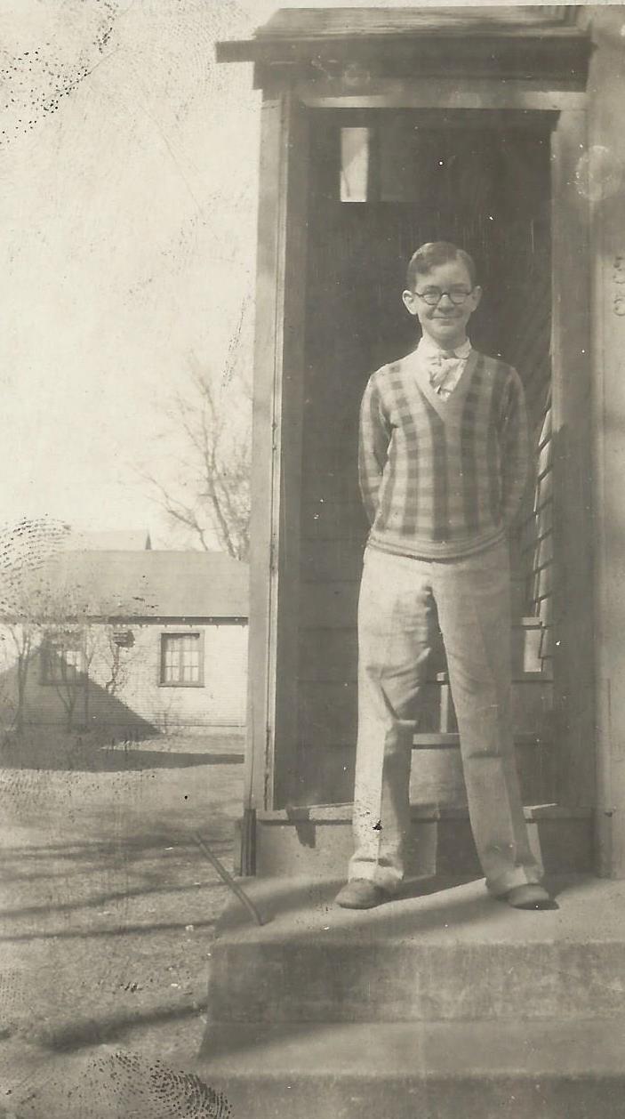 | In the fourth grade, when I was 10, 1 started wearing glasses. This was uncommon for children in those days, and there were jibes of "Four-eyes" or "Specs" from the other children. Several pairs were broken over a period of time. On one occasion a jump rope caught the corner and pulled them from my face. | |