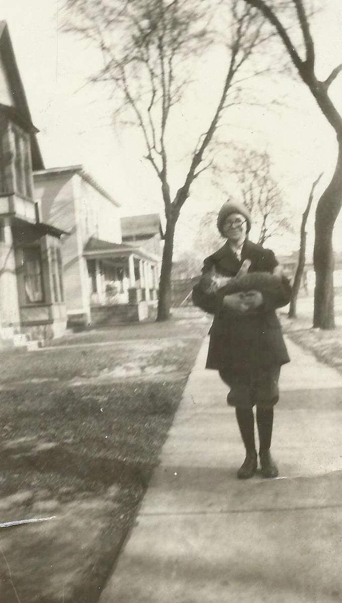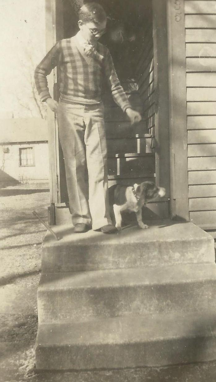 Dad and unknown dog at 33-35 Shelby in Grand Rapids, ca. 1926; Dad with an unknown cat in Grand Rapids, ca. 1926 |