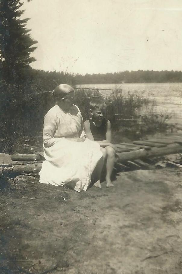 Dad at Bass Lake, ca. 1923; Dad with his great aunt Emeline Woodin Francisco at Bass Lake, ca. 1923 |