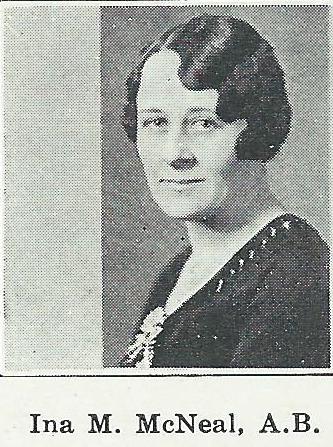 | No particular memories of Junior High remain. Since we remained in the same house, the switch in schools was not too pronounced. I seem to remember one teacher, Miss McNeal (Mrs.?). Our debating group was awarded a decision by the student judges, and she objected to it. I objected to her objection, which brought forth personal criticism. This same teacher once kept me from a class outing after school for some minor infraction of her rules. Otherwise, I was a slightly better than average student. | The South High School yearbook for 1931 shows this teacher's name as Ina M. McNeal. Census records show that she was unmarried. |