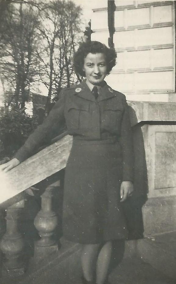 Mom in military uniform, ca. 1945, and in Land Army oufits, 1941 |