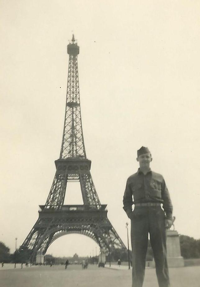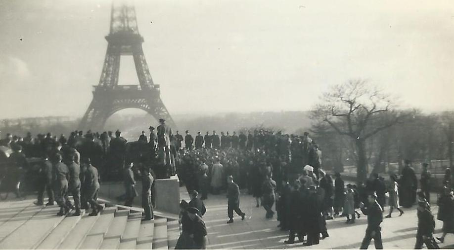 by groups of GIs around the Eiffel Tower who were campaigning to get sent