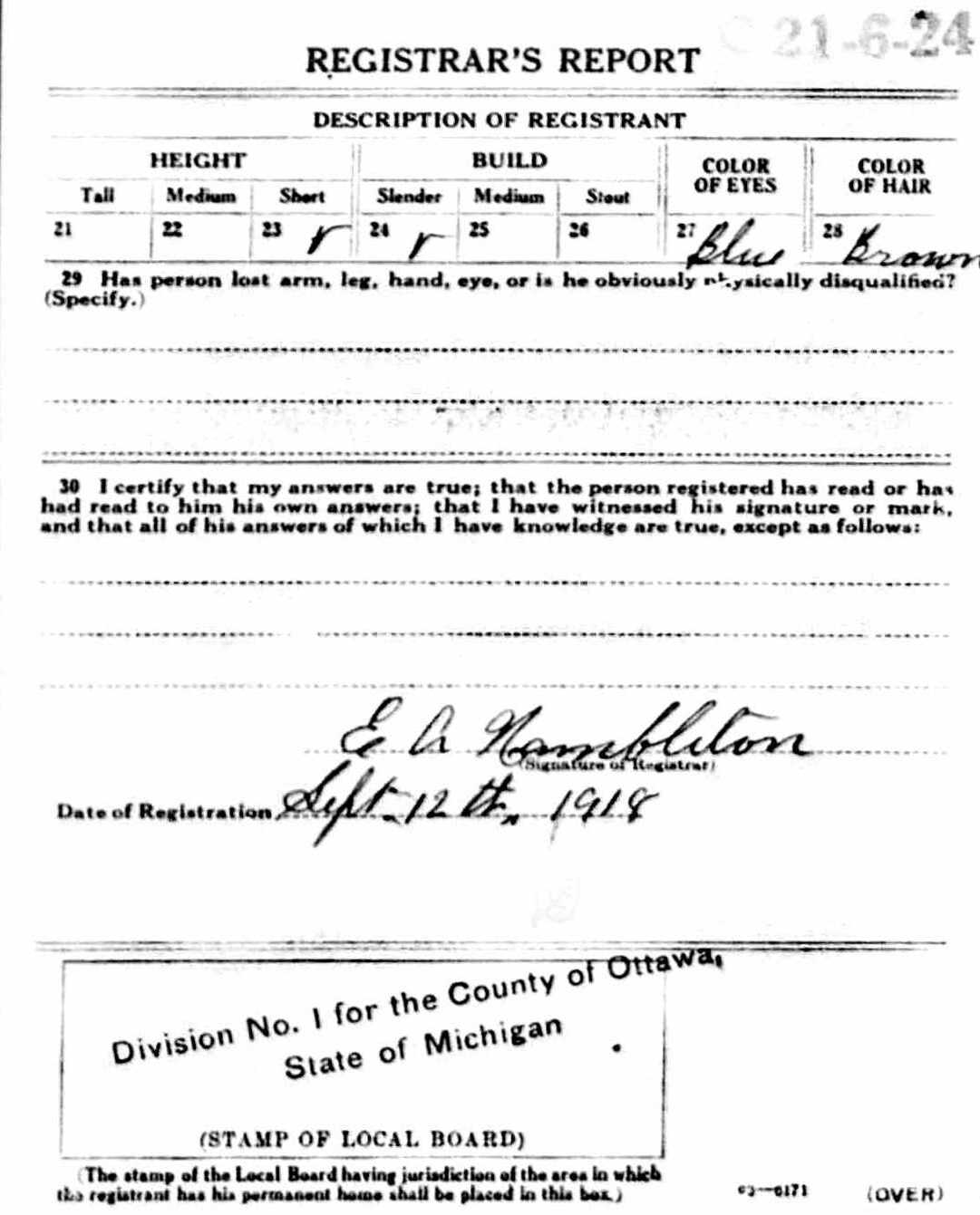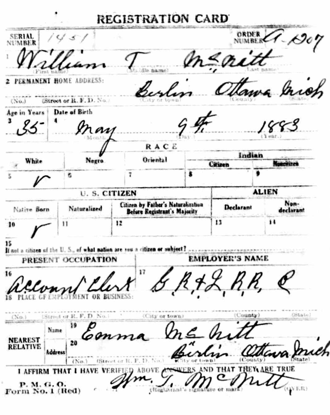 By 1912, Bill and Emma (along with Emma's father and siblings) had made the decision to move to Grand Rapids. Although Bill still had a number of relatives in that area, by this time his father had died (on March 4, 1904) and his mother had remarried and was living in Kansas City, Missouri. His sister Grace and brother-in-law James Plowman, living in the town of Berlin in Ottawa County, were the only members of his immediate family still there.