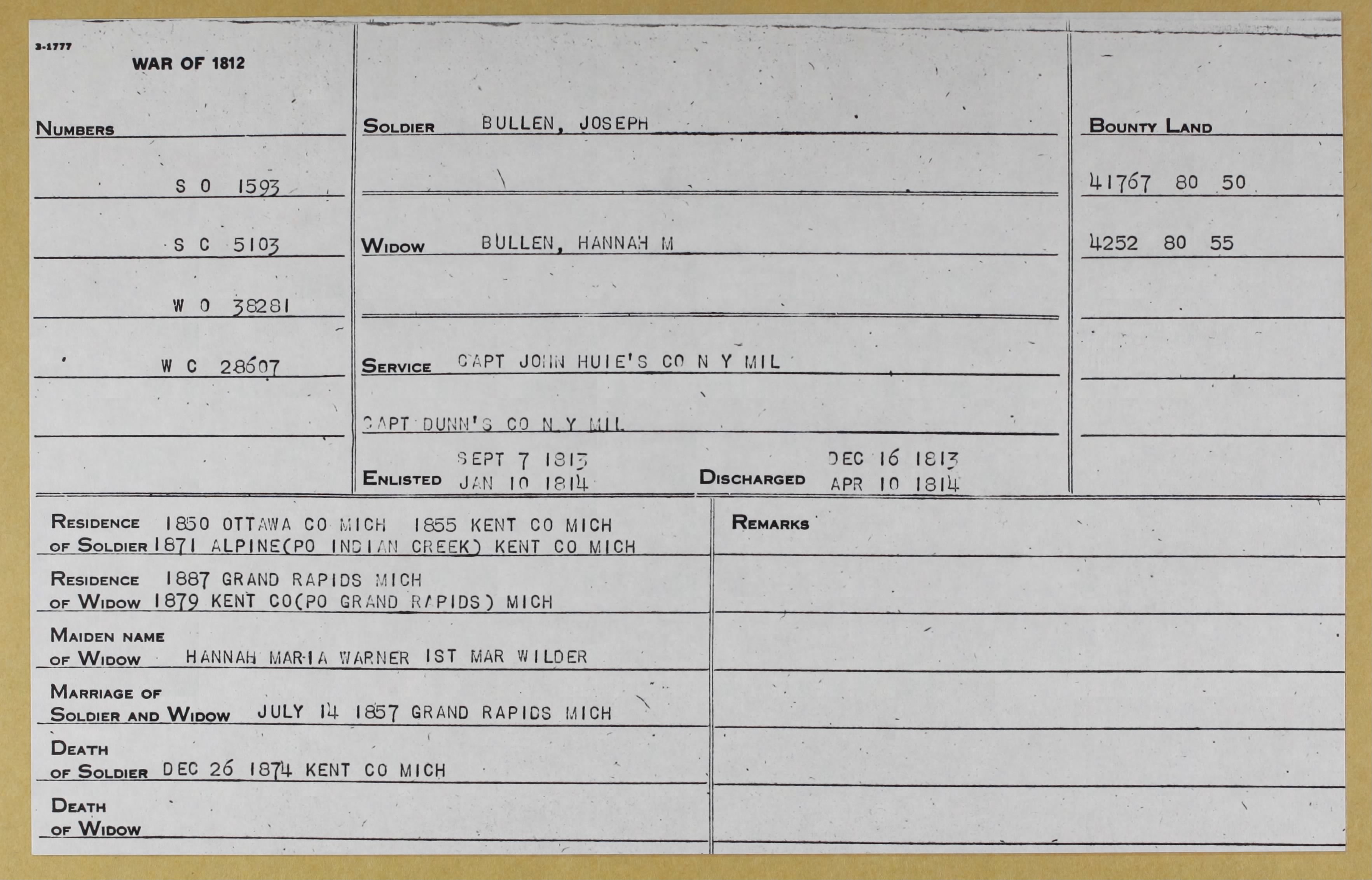 He enlisted on April 24, 1813 for one year in Captain Simeon Wright's